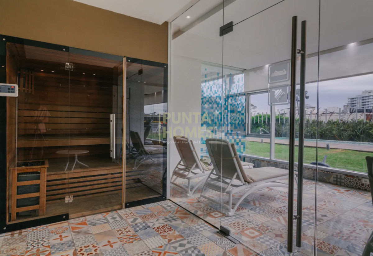 Piscina exterior e interior: Disfruta de un refrescante baño con vistas panorámicas al entorno urbano y natural de Punta del Este. Ideal para relajarte en un ambiente de tranquilidad.
